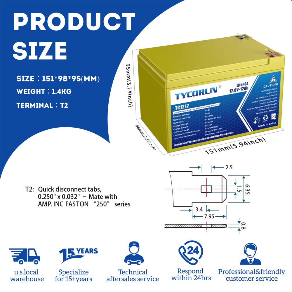 About Tycorun 12 Volt 12Ah Lithium Deep Cycle Battery